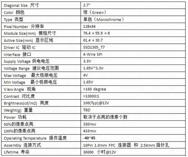 2 7 Inch 10p Spi Green Oled Module Ssd1305 Drive Ic 3 3v Io 128 64 Aliexpress